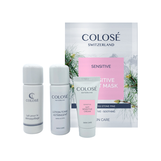 Reinigungsmilch (40 ml), Gesichtswasser (40 ml), Sensitiv-Creme (15 ml) und Sensitiv-Tuchmaske.